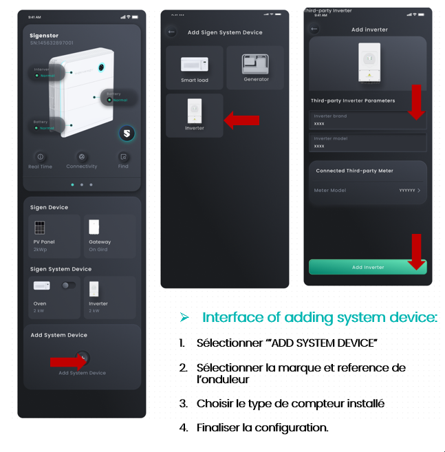 ⚠️ La mise en service du système SIGENSTOR se fait uniquement par l’intermédiaire de l’application MySIGEN (disponible sur Play Store & Apple Store). La présence d’un réseau 4G est donc obligatoire.